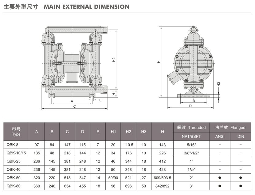 QBK第三代氣動(dòng)隔膜泵規(guī)格表