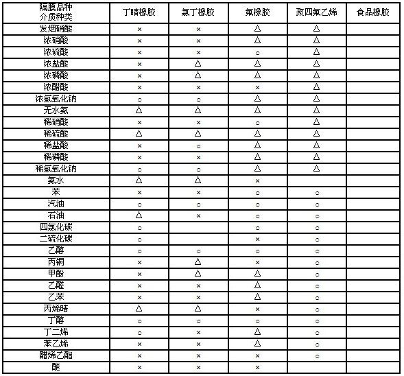 3.氟橡膠6021#本單位特制,主要用于高溫150℃:,耐甲笨耐腐蝕。但價格比其它隔膜高。