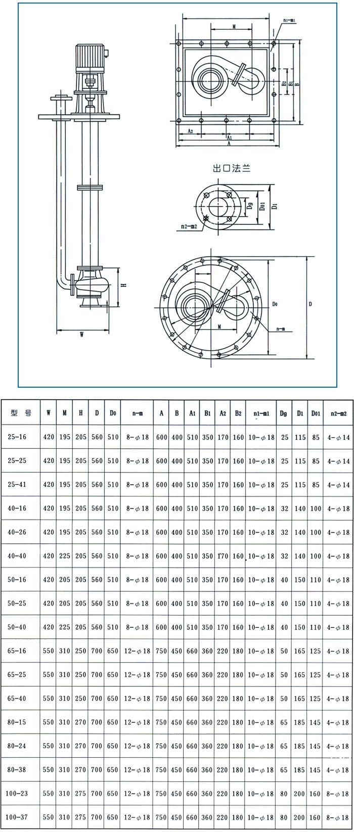 五、FY型耐腐蝕液下泵性能參數(shù):