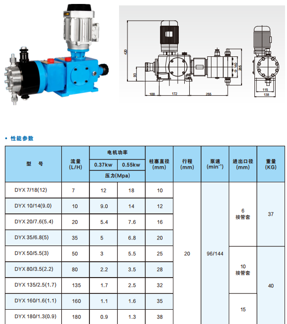 DY-X型液壓隔膜式計量泵性能參數(shù):