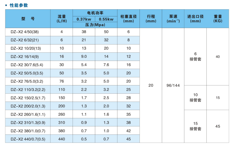 DZ-X2型柱塞式計量泵性能參數(shù):