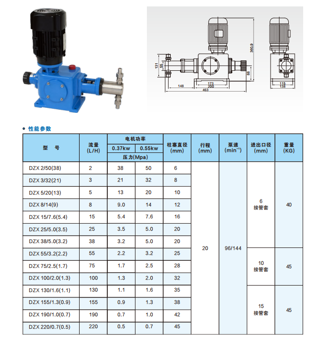 DZ-X型柱塞式計(jì)量泵性能參數(shù):