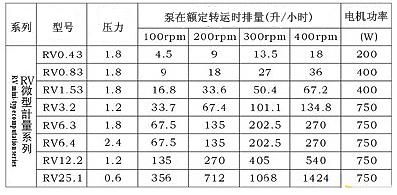 RV微型計量不銹鋼螺桿泵性能參數(shù):