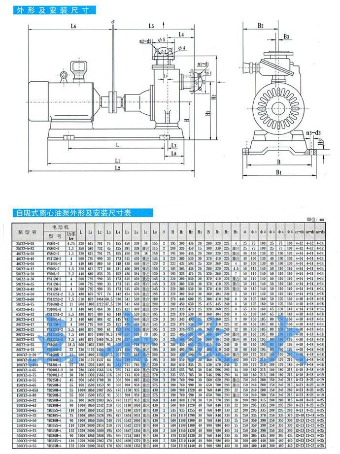 四、CYZ-A型自吸式離心油泵型號(hào)參數(shù):