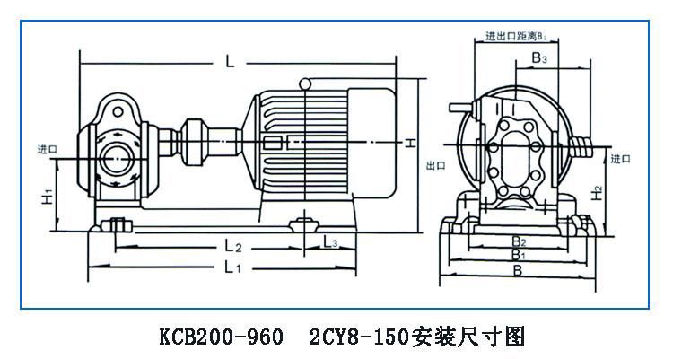 2、KCB18.3~200、2CY1.1~12配帶管螺紋口的腰形法蘭;KCB300~960、2CY18~150不配帶法蘭,需用戶自行加工。