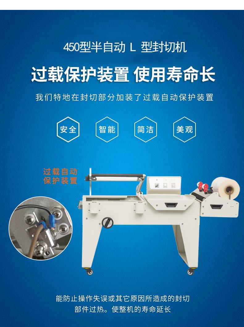1、FQL系列半自動“L”型封切機適用于電子、五金、塑膠、軟件、食品、印刷、制藥及地板、陶瓷等行業的小批量收縮包裝。