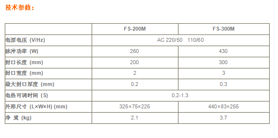 FS-M系列帶中刀手壓式封口機適用于各種塑料薄膜、復合薄膜及鋁塑薄膜的封合,M型在設備中部裝有切刀,封口完畢后可將袋邊切斷。
