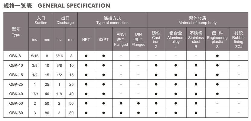QBK第三代氣動(dòng)隔膜泵規(guī)格表