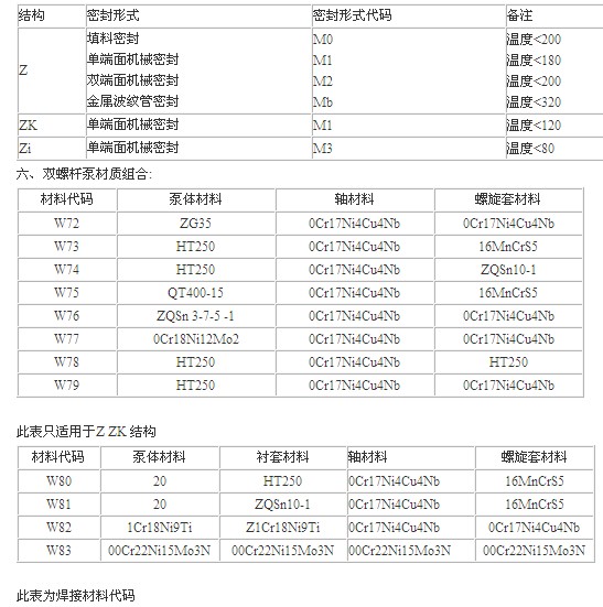 5、雙螺桿泵密封形式代碼說(shuō)明:
