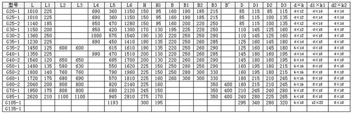 | G20-1 | 960 | 0.96 | 0.75-6級(jí) | 960 | 0.8 | 0.75-6級(jí) | 125~1250 | 0.1~1.5 | 1.1 |