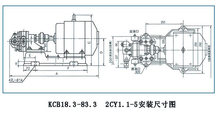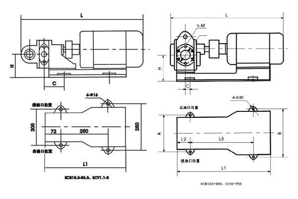 KCB、2CY型齒輪油泵安裝尺寸: